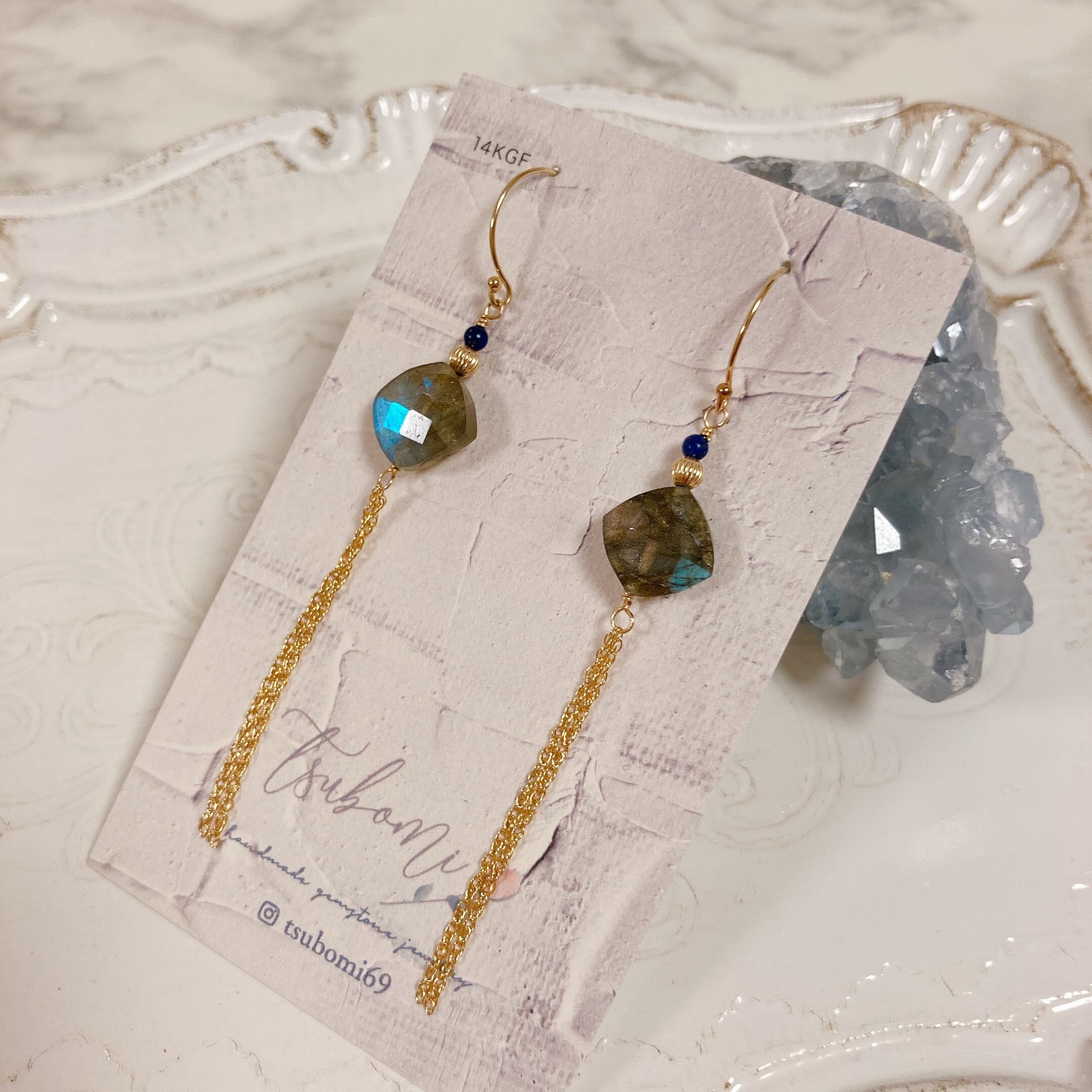 【Cさまご予約商品】ラブラドライトのオリエンタルチェーンピアス