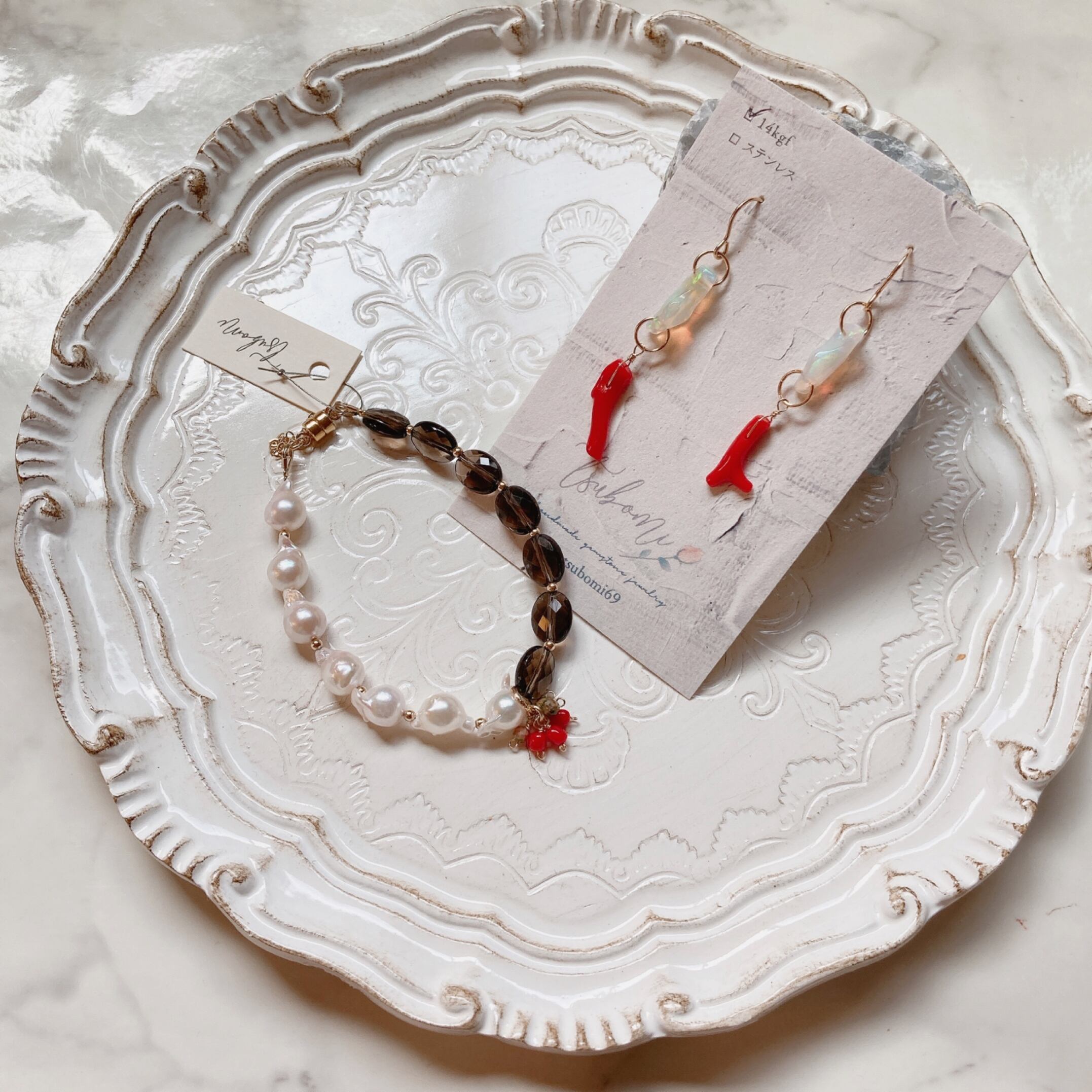 【Cさまご予約商品】ラフオパール×枝珊瑚のピアス他