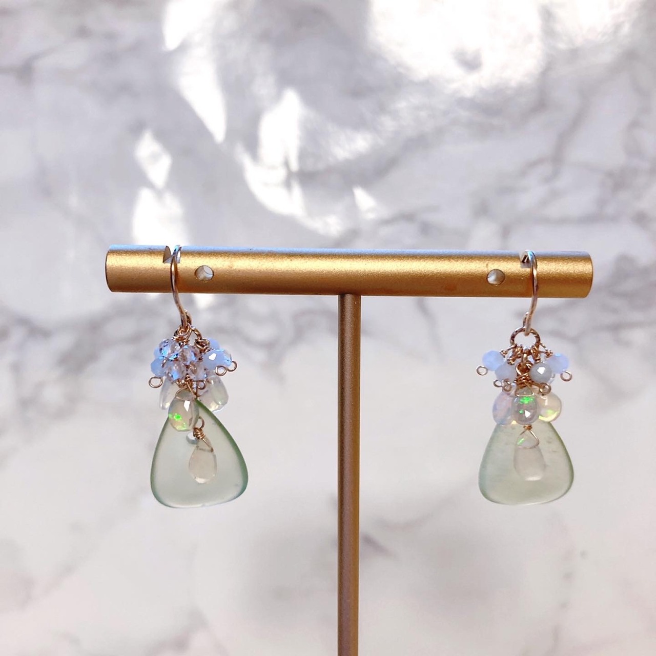色とりどりの天然石を菜の花の花びらの1片に見たててお仕立てしたピアスです。